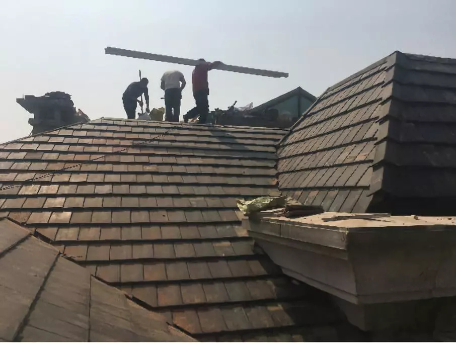 # 化工廠廠房阻燃防水工程勘查與解決方案 ## 一、工程勘查情況 在對化工廠 1#、2#、3#廠房進行現場勘查后,發現各廠房呈現出不同的屋面狀況與漏雨問題。其中 1#、3#廠房漏雨現象較為突出,而這與多方面因素相關。 ### (一)屋面垃圾與雨水管問題 施工完畢距今已有較長時間,屋面長期積累了大量垃圾,許多雨水管被雜物封堵。一旦遭遇強降雨天氣,雨水無法順暢通過雨水管排出,就會從天溝與屋面板之間的縫隙回漏到室內,從而造成滲漏。 ### (二)屋面板材接縫與破損問題 自屋面施工完成后,長時間未進行維護和修補,致使屋面部分板面(包括陽光瓦)出現接縫不嚴以及破損情況。這些薄弱部位在雨水沖刷下,無法有效阻擋雨水滲透,進而導致局部漏雨現象頻發。 ### (三)屋面坡度與接縫設計問題 屋面設計坡度較小,不利于雨水的快速排放,容易造成積水。加之屋面板接縫本身不夠嚴密,當降雨量較大時,積水達到一定厚度便會沿接縫處倒流回灌到板內,屋脊部位尤為嚴重,因為該區域是雨水匯集的關鍵部位,積水深度相對更大,滲漏風險也就更高。 ### (四)屋面靠近天溝部位的板材問題 在靠近天溝 600 范圍內,屋面板局部板材面固定點出現松動甚至塌陷,面層板也有部分板面產生折斷裂口,這些問題直接導致雨水滲漏。此外,部分靠近天溝的屋面板因上屋面作業人員頻繁踩踏,板面上翹并出現裂縫,使得雨水能夠輕易滲漏到室內。 ## 二、防水做法與修補方案 ### (一)確定防水做法 綜合考慮東方屋面防水施工的特點以及化工廠廠房的實際需求,確定廠房屋面防水采用基層為一布三油,面層為 4 厚 SBS 防水卷材的方案。這種組合能夠為屋面提供較為可靠的防水屏障,一布三油基層可以增強屋面基層的防水性能和抗裂能力,4 厚 SBS 防水卷材則具備良好的耐候性、防水性和抗拉伸性能,兩者相輔相成,有效抵御雨水侵蝕。 ### (二)具體修補方案 1. **清理屋面與疏通雨水管** 首先安排專業人員對屋面垃圾進行全面清理,將堆積在屋面上的雜物、灰塵等徹底清除,同時對堵塞的雨水管進行疏通,確保雨水排放系統暢通無阻。此步驟能夠有效解決因屋面垃圾堆積和雨水管封堵導致的漏雨問題,恢復屋面正常的排水功能。 2. **雨后漏點標記與局部點修補** 在降雨過后,及時對屋面的漏點進行精確標記。根據標記位置,針對屋面有接縫不嚴和破損的局部板面(含陽光瓦)進行細致的修補工作。修補過程中,將對損壞的板材進行更換或修復,對接縫處進行重新密封處理,確保局部區域的防水性能得到恢復,從而消除因局部板面問題引發的漏雨隱患。 3. **屋脊部位通長修補防水** 針對屋脊部位因坡度和接縫問題導致的嚴重滲漏情況,在屋脊部位每側 700 范圍內進行通長修補防水作業。施工時,將嚴格按照防水工藝要求,先對基層進行處理,確?;鶎悠秸?、干燥、無灰塵,然后鋪設一布三油基層,并在其上鋪設 4 厚 SBS 防水卷材,卷材鋪設應平整、無氣泡、無褶皺,且卷材之間的搭接寬度應符合規范要求,通過這一系列措施有效防止雨水在屋脊部位的倒流回灌,確保該區域的防水效果。 4. **天溝兩側補加防水** 對于靠近天溝 600 范圍內因板材固定點松動、塌陷、折斷裂口以及上屋面作業人員踩踏導致的滲漏問題,在天溝兩側 600 范圍內補加防水。具體操作包括對松動和塌陷的固定點進行加固修復,對有折斷裂口和裂縫的板面進行處理,然后在該區域增加防水卷材的鋪設層數和寬度,加強防水處理,形成一道嚴密的防水防線,有效阻止雨水從該區域滲漏到室內。 通過以上勘查分析與針對性的修補方案實施,有望全面解決化工廠廠房的漏雨問題,提高廠房的防水性能,確保廠房內部生產設備和物資不受雨水侵蝕,為化工廠的正常生產運營提供有力保障。